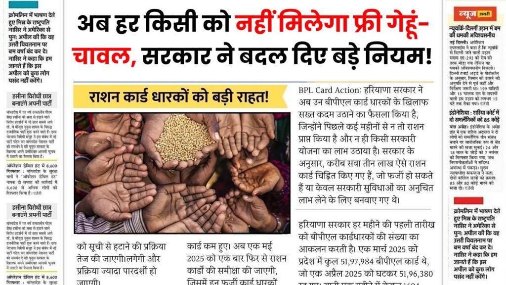 Ration Card Holders :भारत में गरीब और मध्यम वर्ग के परिवारों के लिए राशन कार्ड एक अत्यंत महत्वपूर्ण दस्तावेज है। यह कार्ड सरकारी सार्वजनिक वितरण प्रणाली के माध्यम से सस्ते दामों पर अनाज और अन्य खाद्य सामग्री प्राप्त करने में सहायता करता है। वर्ष 2025 में केंद्र सरकार और विभिन्न राज्य सरकारों ने इस व्यवस्था … Continue reading अब हर किसी को नहीं मिलेगा फ्री गेहूं-चावल, सरकार ने बदल दिए बड़े नियम! | ration card holders